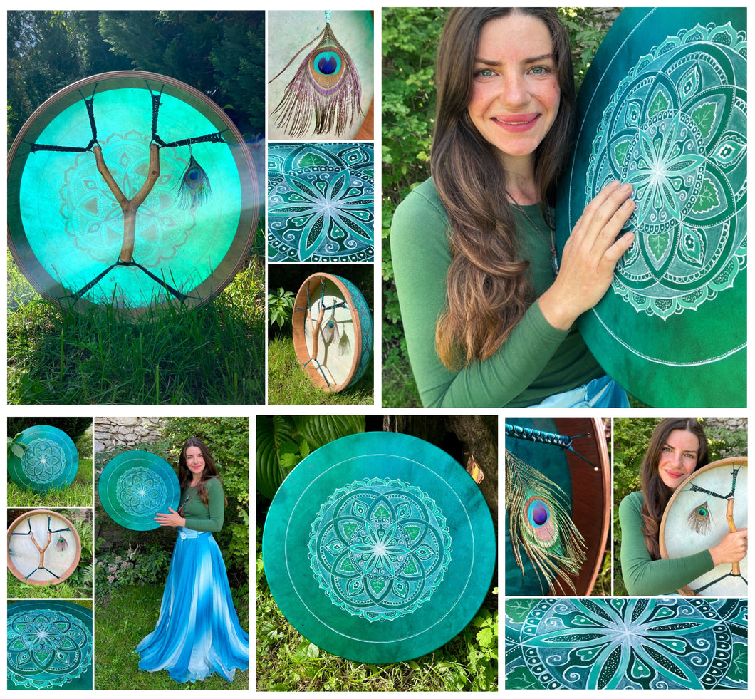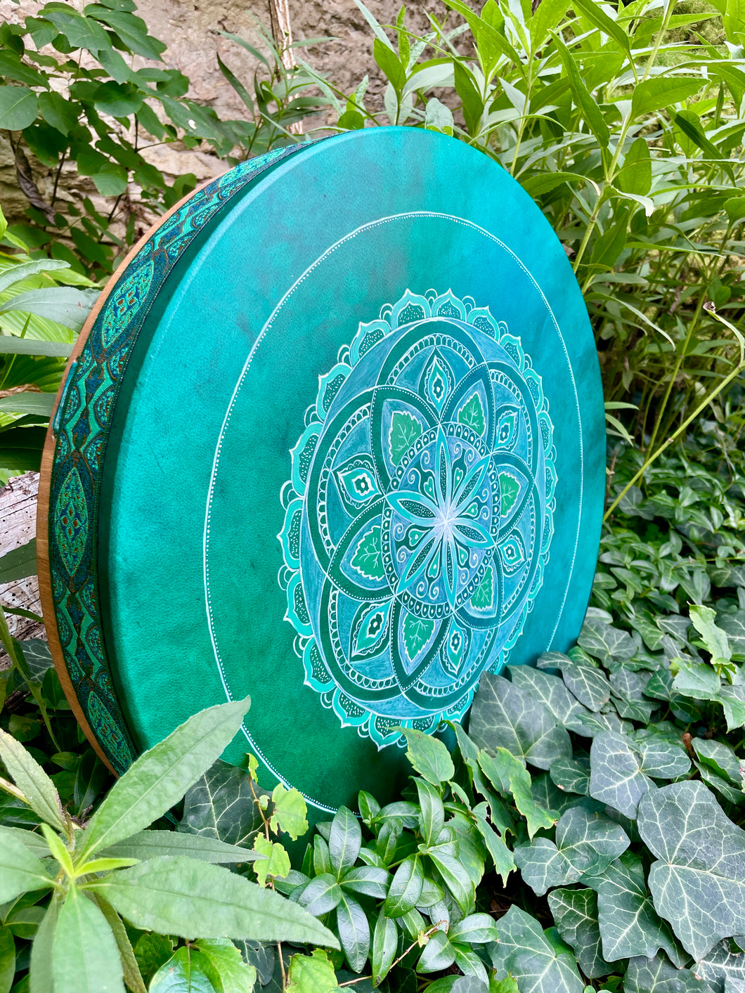 We birthed this beautiful greenish-blue drum at the special eve of Full-Moon Eclipse. This color combination is one of my favorite; like Mother Earth&Mother Ocean.💚💦🌍🌿💙