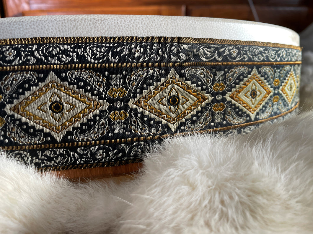 Crafted with a birch wood frame and adorned with a detailed embroidered ribbon, these drums draw inspiration from the pure beauty of nature—made with love.