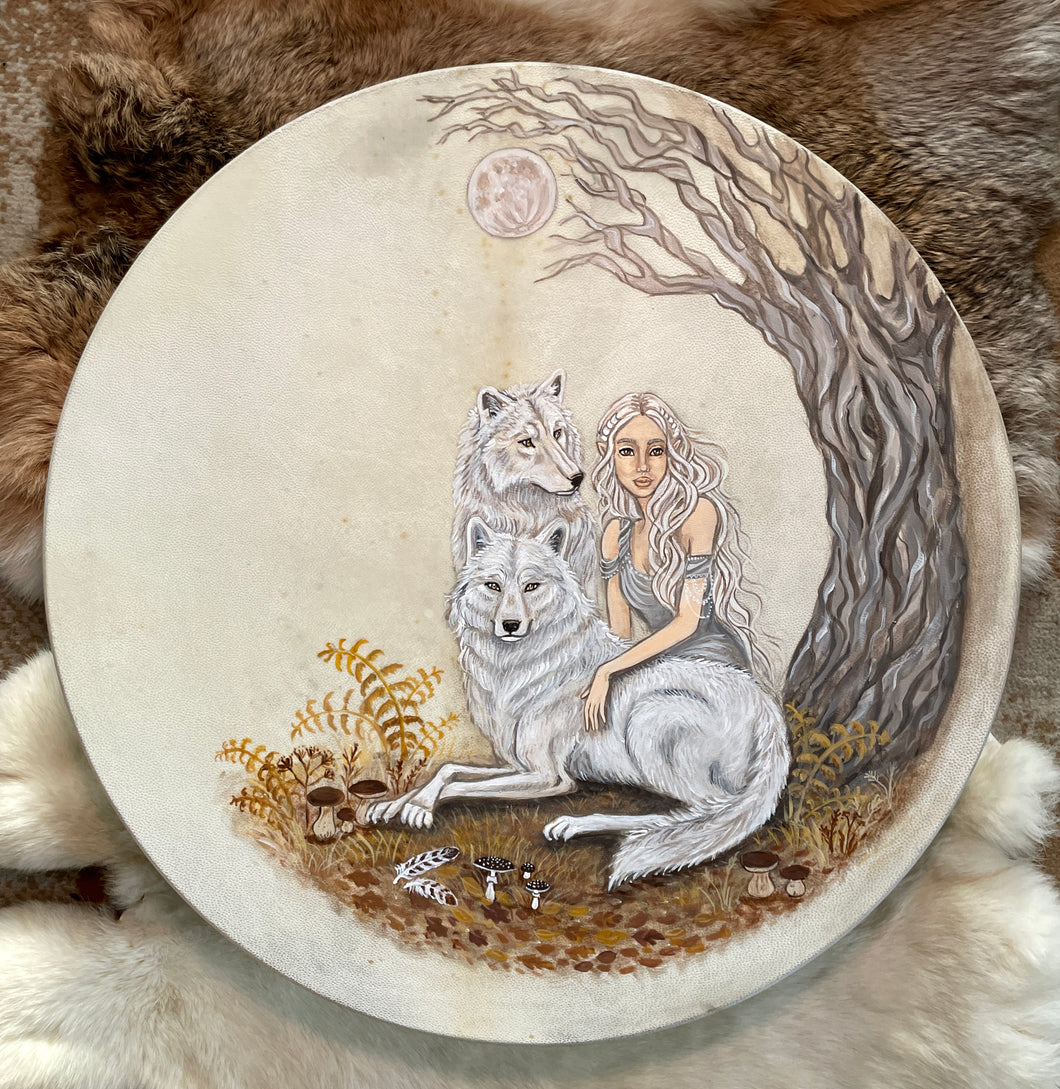 18” Wolf Spirit drum, Shaman drum, deer skin drum, medium size drum, Medicine drum