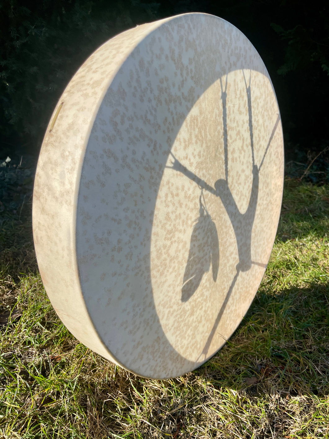 22” Wild Spirit Drum, spotted natural skin drum, Shamanic Drum, Medicine drum, Large size shaman-drum , Handmade drum